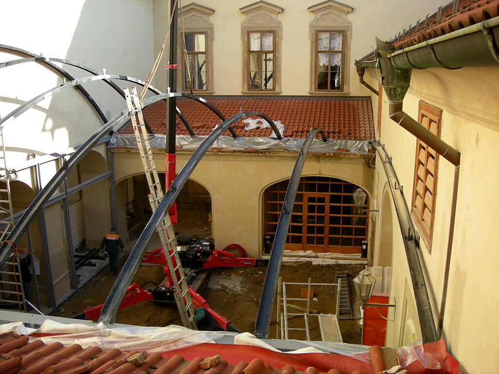 Firma UNIVARS realizovala výrobu a montáž nosné ocelové konstrukce pro zastřešení dvora Nosticova paláce o půdorysných rozměrech 10x14m. Nosná ocelová konstrukce je předepnuta pomocí systému nerezových lan Macalloy. Na ocelovou konstrukci byl instalován systém zastřešení přetlakovými polštáři z ETFE fólie v rámech z hliníkových profilů.